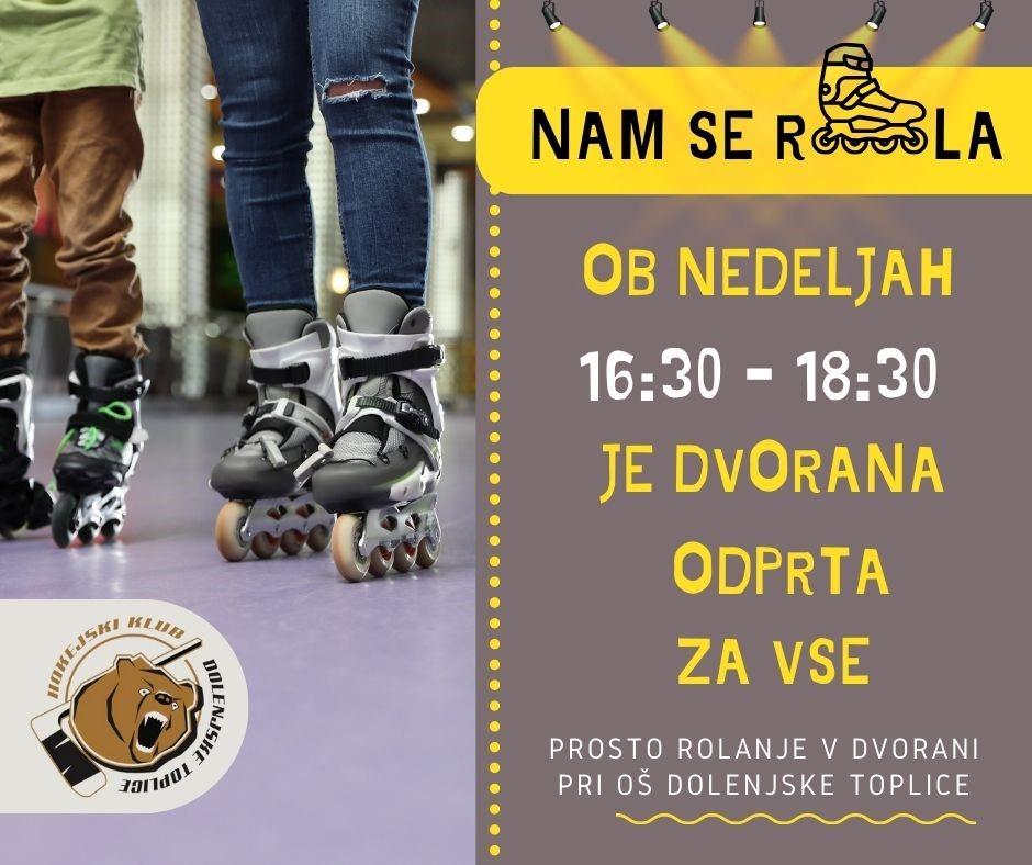 - med 16:30 in 18:30 je namenjena rekreativnemu rolanju in kotalkanju vseh starosti;